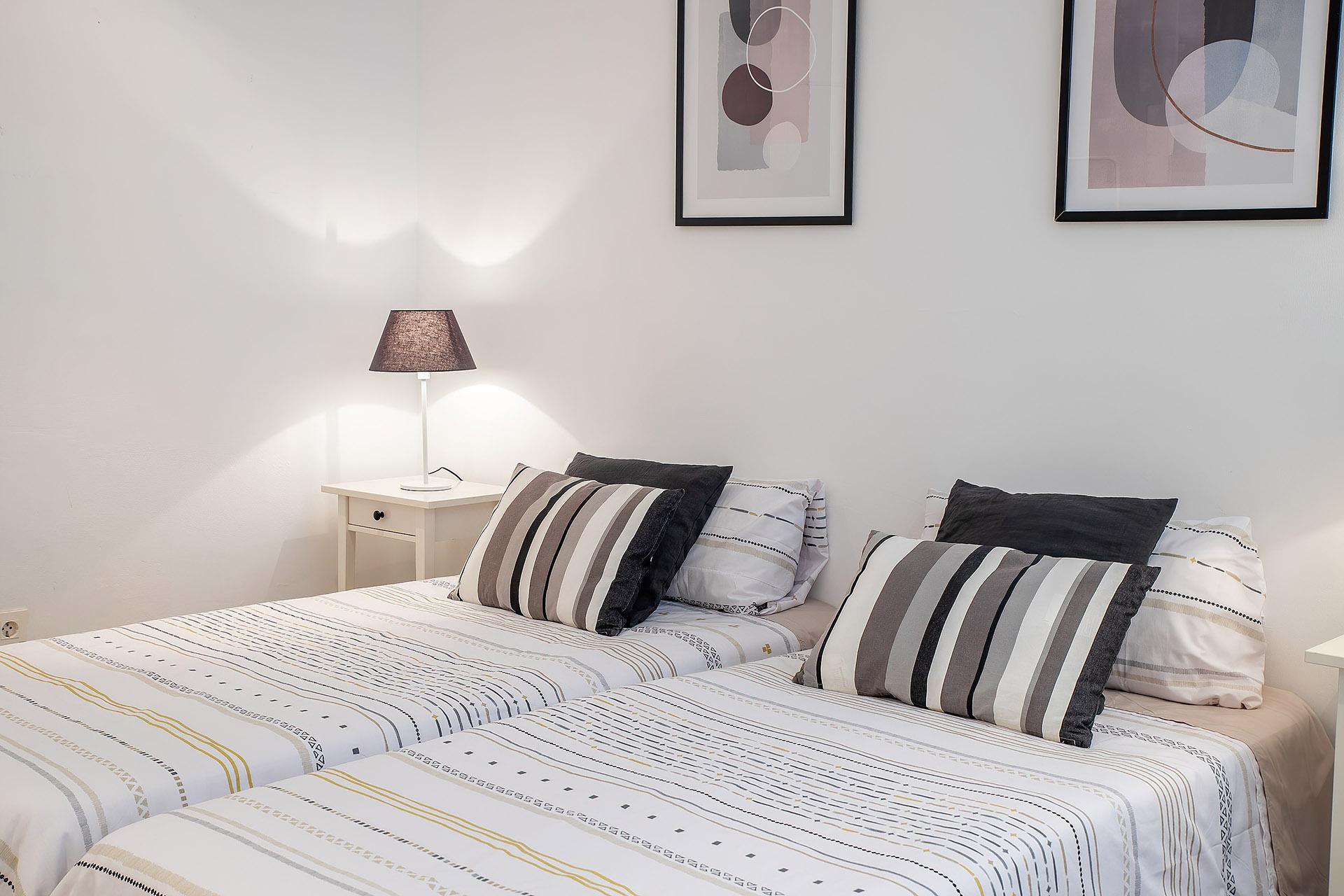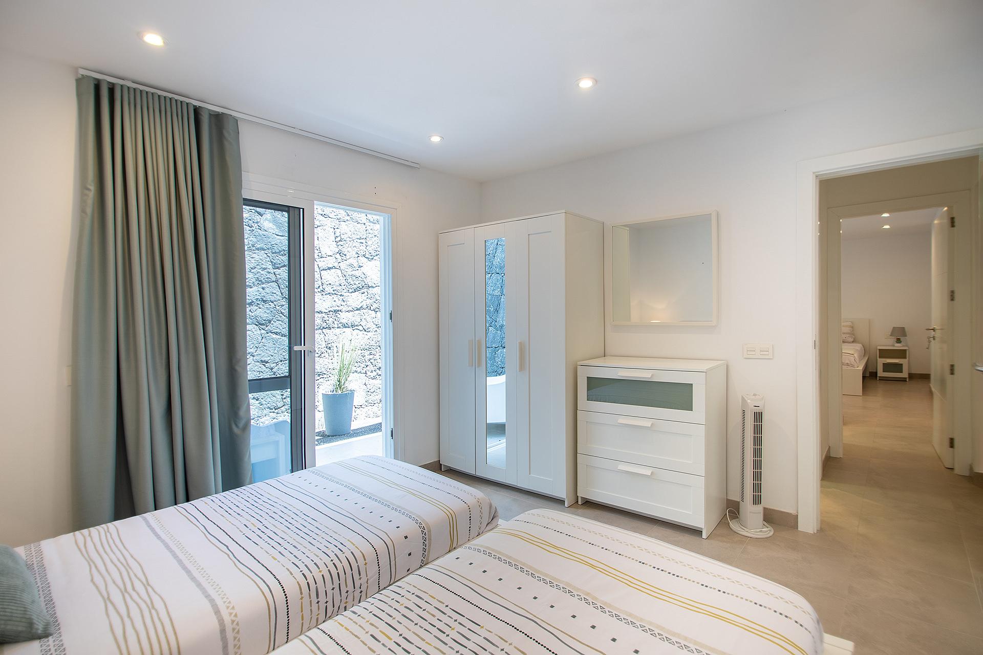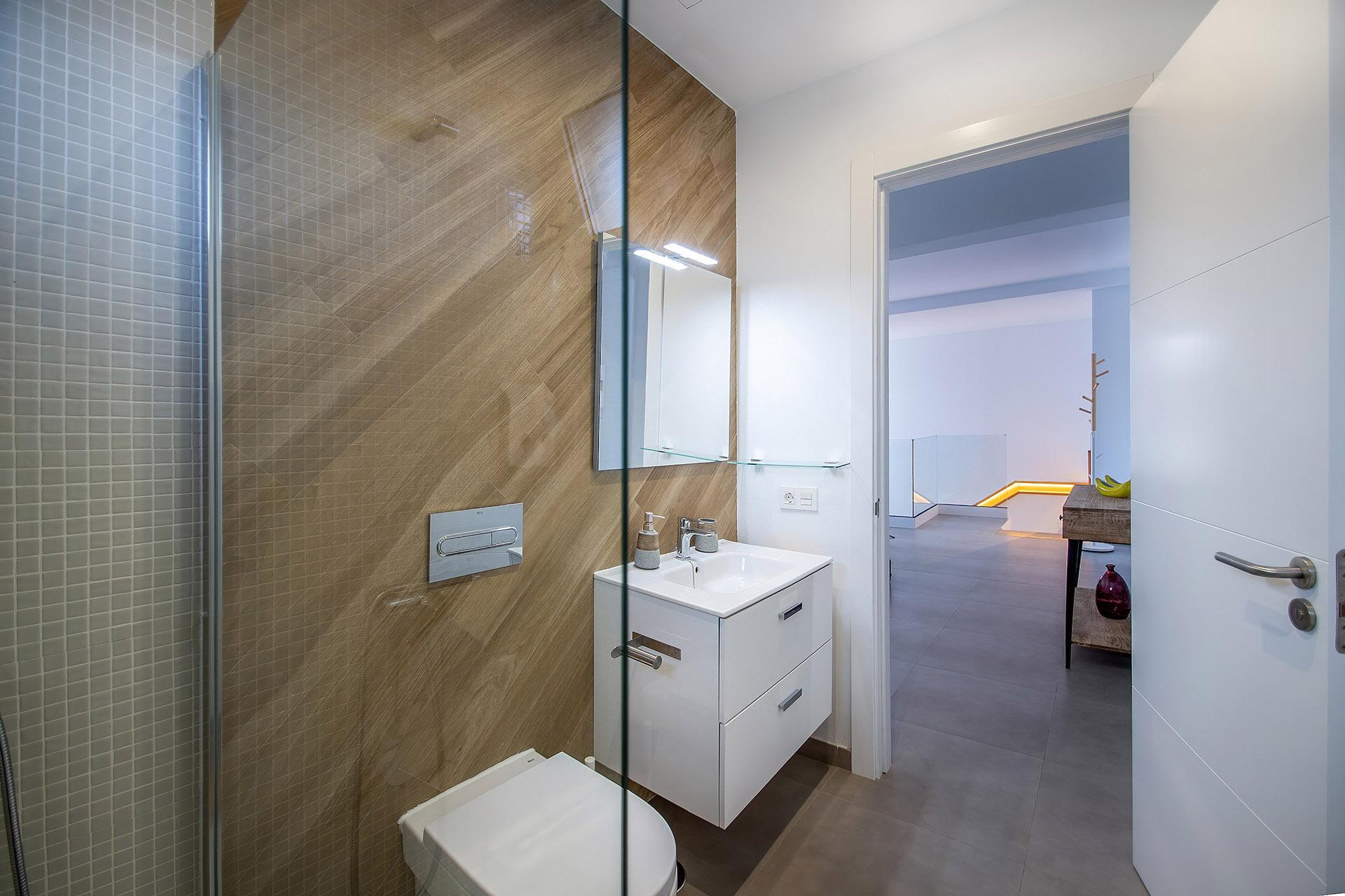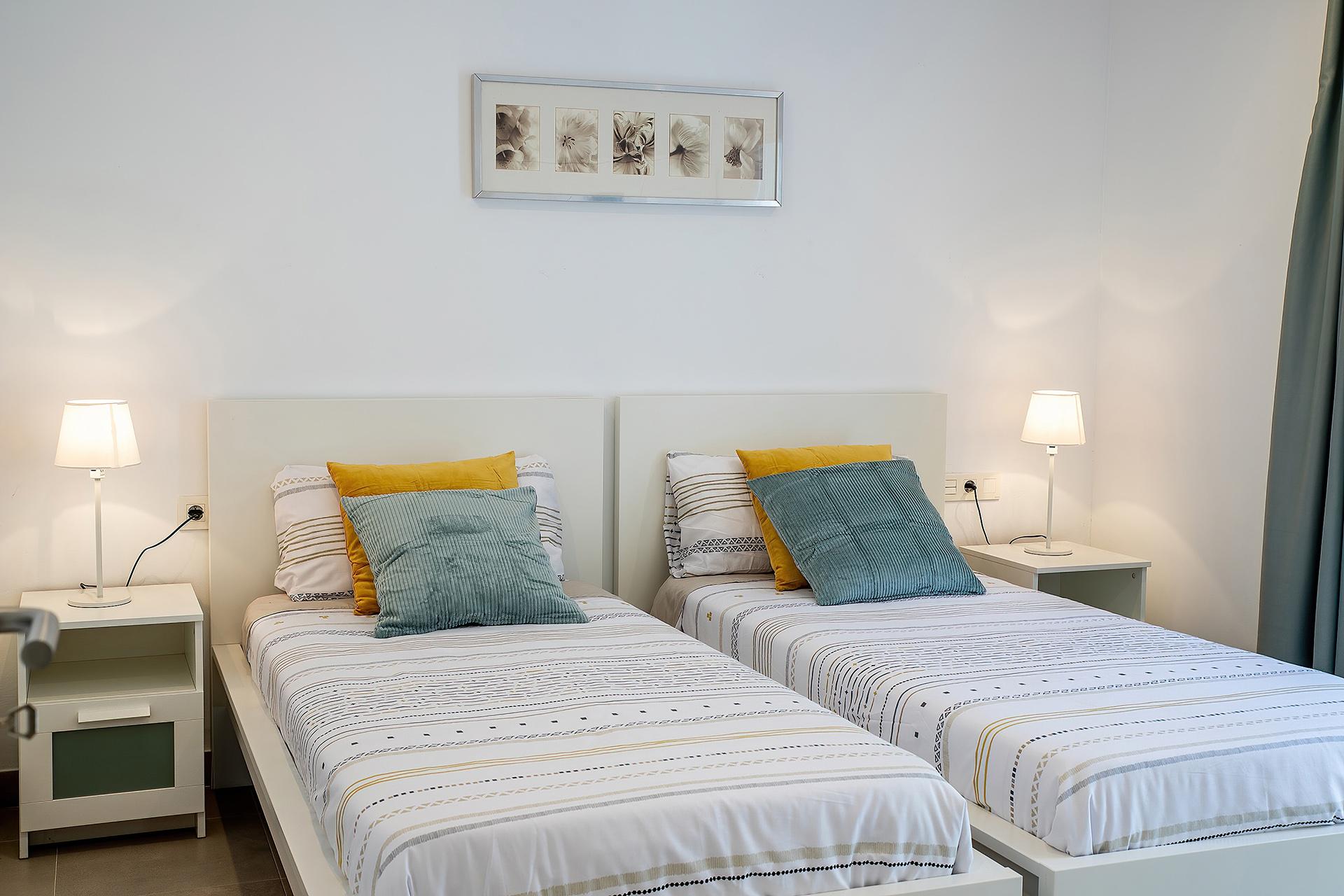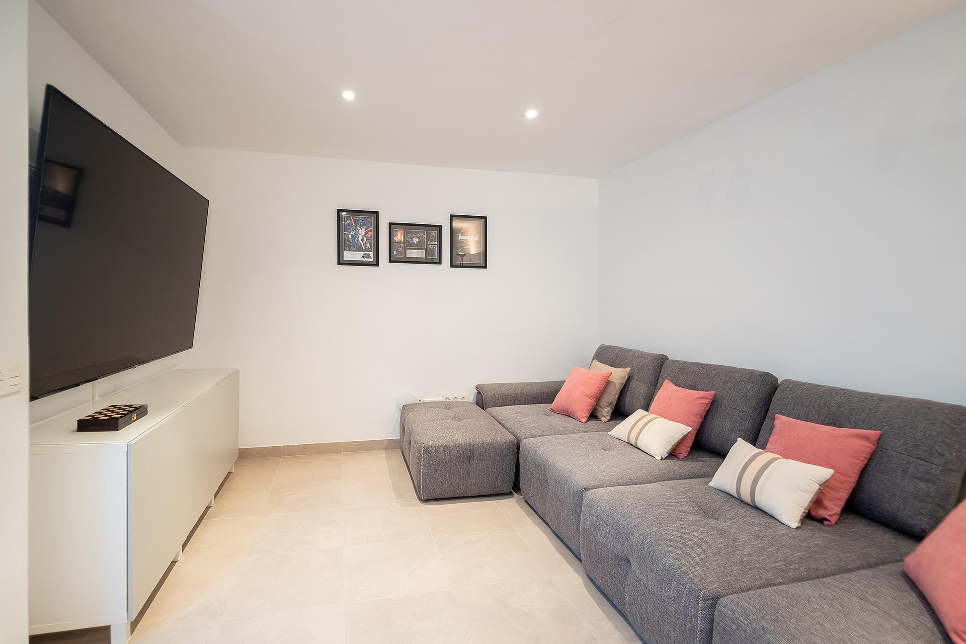 On the ground floor we find 1 bedroom with king size bed and en suite bathroom, two bedrooms with two 90cm beds each and terrace and another independent bathroom. In this room you will find our home cinema with a large international TV and a work or games table.