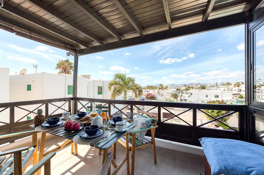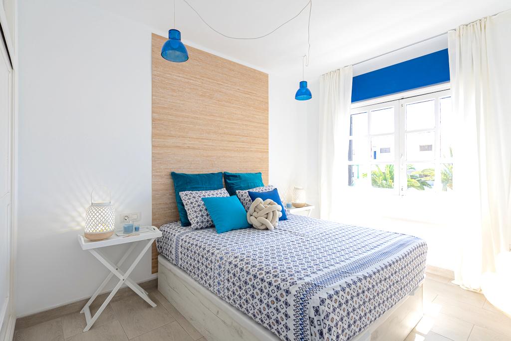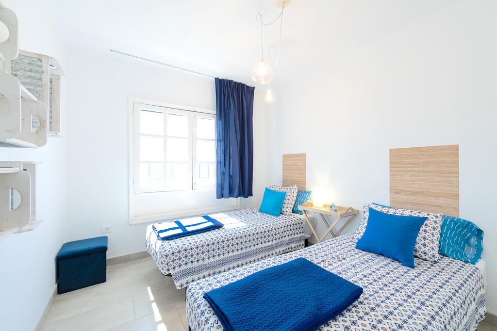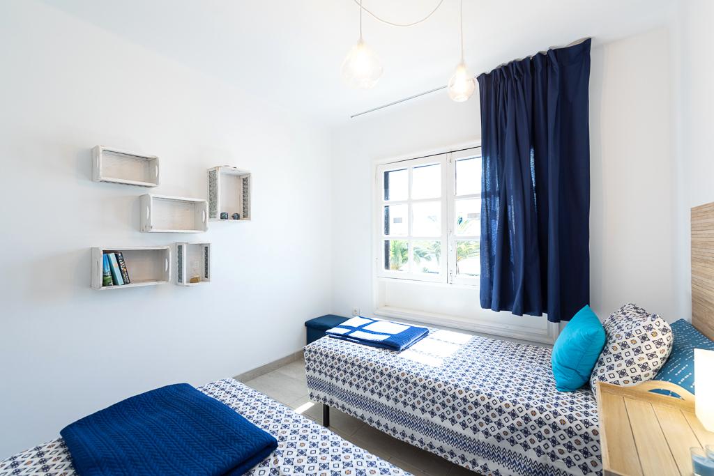 Flat for 4 people with 2 bedrooms and 1 bathroom. It has a living room and open kitchen equipped with everything you need to cook, a magnificent terrace with beautiful views of the white village of Puerto del Carmen and incredible sunsets. It has one bedroom with a 150cm bed and a high quality Flex mattress, a second bedroom with two 90cm single beds and a complete bathroom.