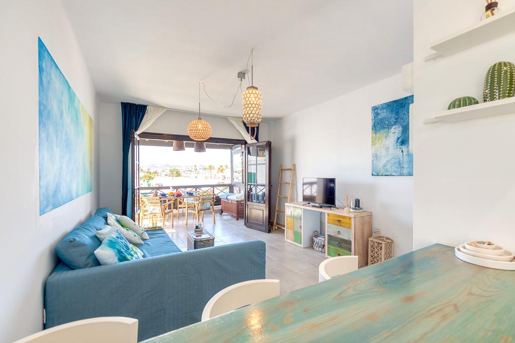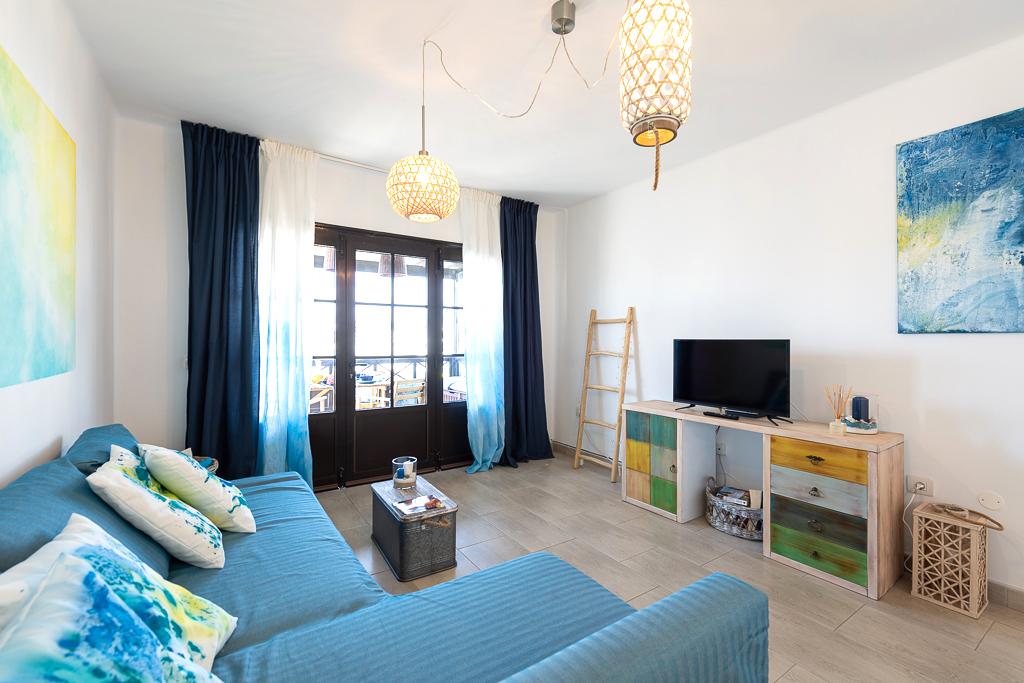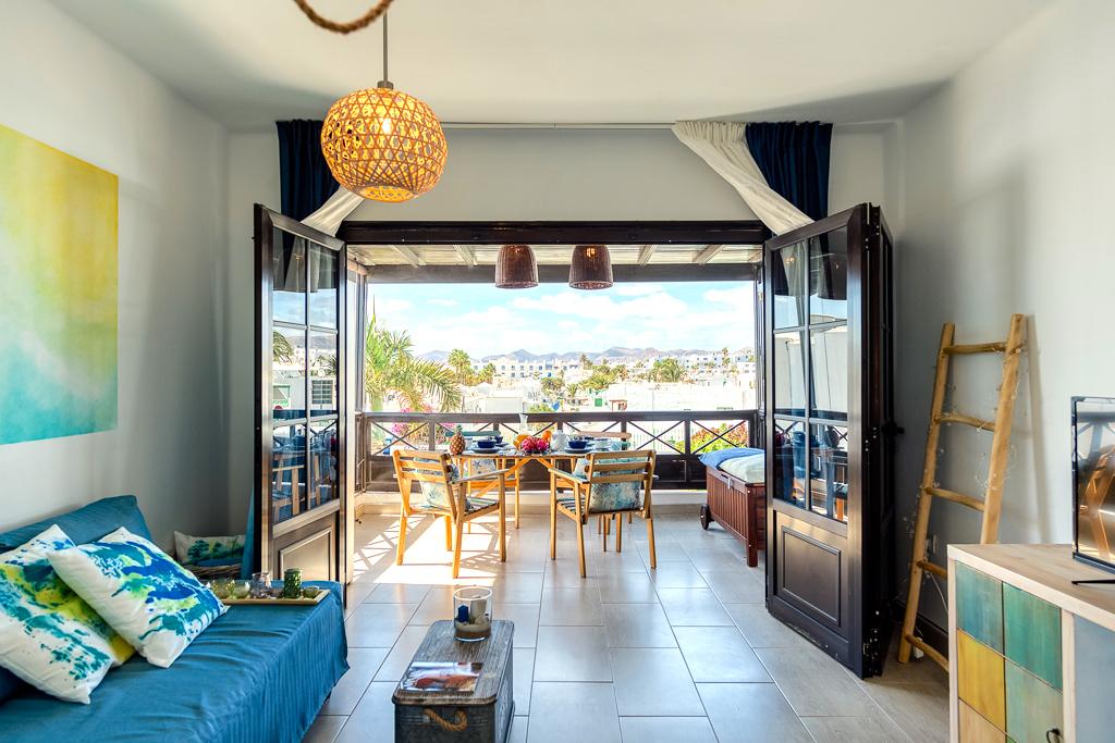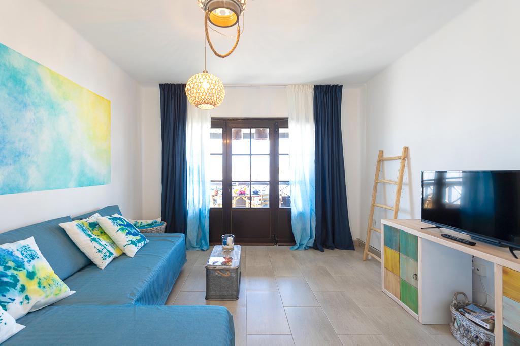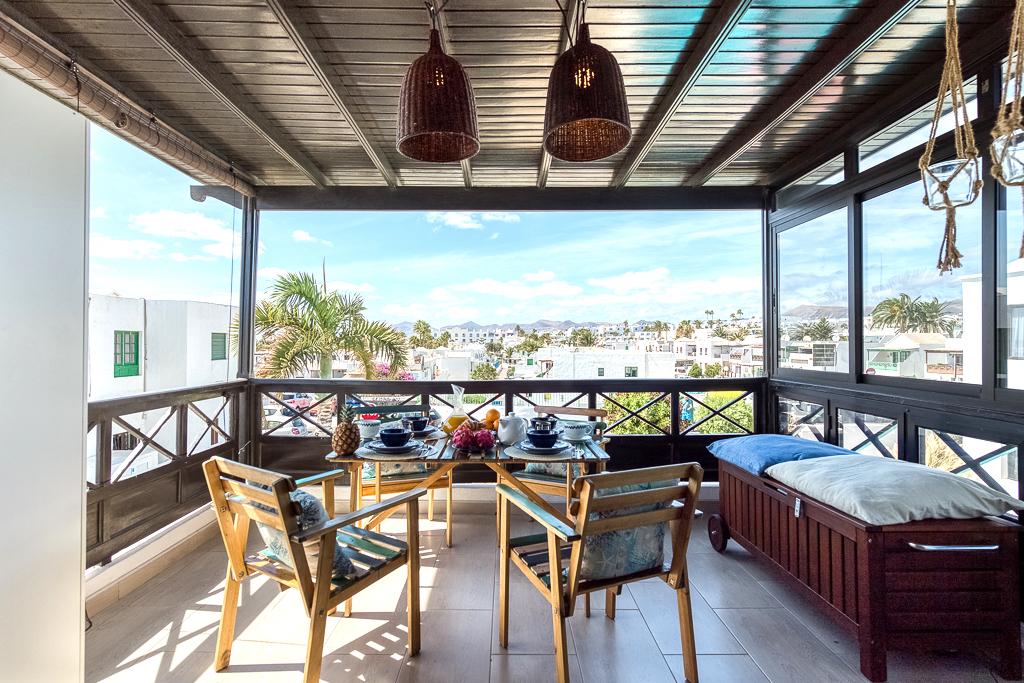 Flat for 4 people with 2 bedrooms and 1 bathroom. It has a living room and open kitchen equipped with everything you need to cook, a magnificent terrace with beautiful views of the white village of Puerto del Carmen and incredible sunsets. It has one bedroom with a 150cm bed and a high quality Flex mattress, a second bedroom with two 90cm single beds and a complete bathroom.
