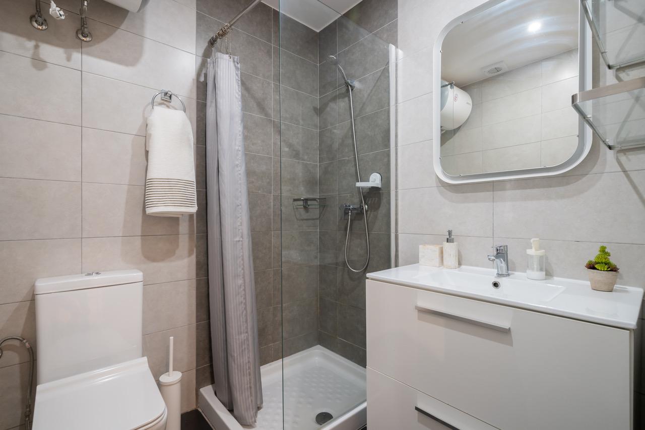 El apartamentos es muy cómodo, con una cama muy confortable y cocina con horno totalmente equipada. Zona de estudio independiente y baño completo con ducha.