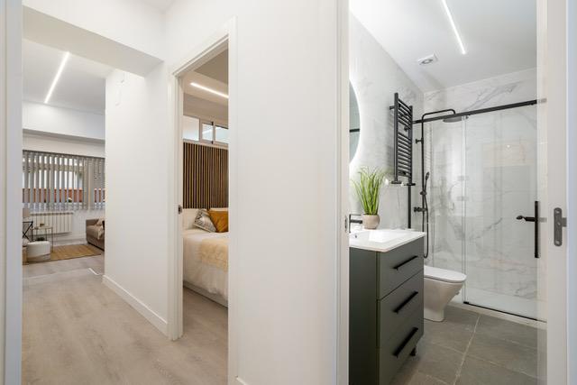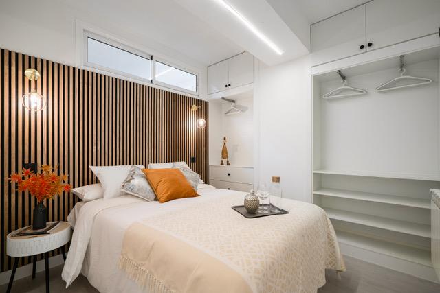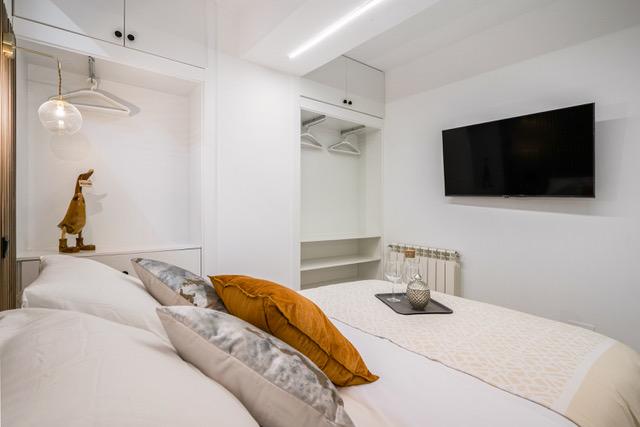 Es un apartamento interior, lo que permite dormir en perfecto silencio por las noches; pero a su vez, el gran ventanal con cortinas, hace que sea luminoso y con mucha privacidad. Se encuentra en una primera planta con ascensor.